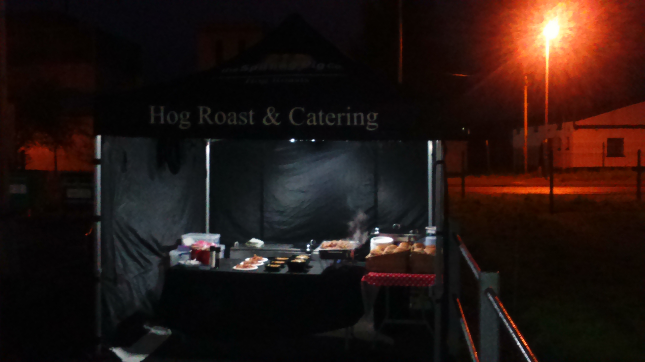 Spitting Pig Wales had been asked to supply one of its amazing Hog Roasts in Johnstown, using one of our own rare breed pigs, born & bred on our farm, Ffos Yr Ewig in Llanfynydd. The hog was booked in with our crackling, homemade stuffing and apple sauce. The 100 guests filled the sports pavilion so Spitting Pig Wales set up there gazebo outside, it wasn’t long before the gorgeous smell of the Hog Roast drifted into the pavilion and the guests frequently asked ‘How long before its ready?’. They didn’t have long to wait until the Hog Roast in Johnstown was carved up and served with the fresh bread rolls, homemade sage & onion stuffing and the sweet apple sauce. The guests didn’t take long to come back for second & third helpings (hungry rugby players!) finishing off the last of the hog roast. All that was left to do was for the Spitting Pig Wales Team to pack up and leave for HQ, Llanfynydd.